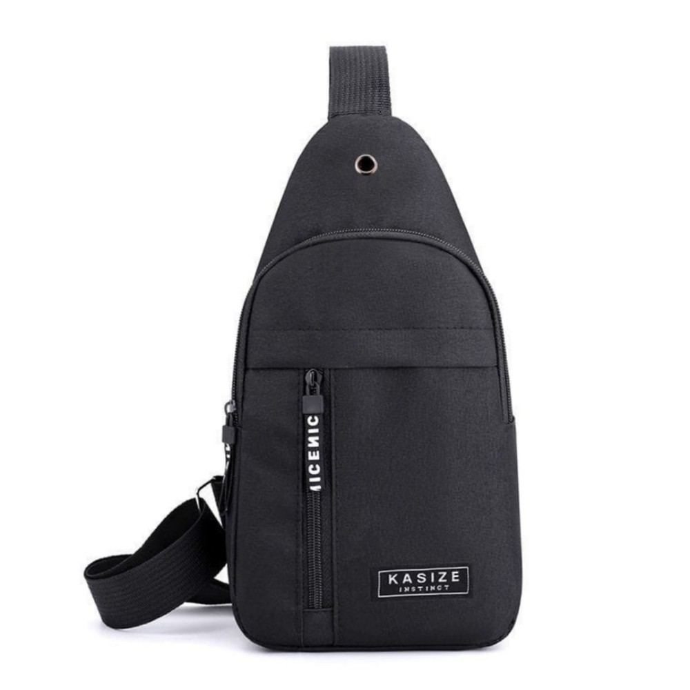 Bolsa pochete transversal em lona com 2 compartimentos em zíper e saida para fone com alça ajustável e impermeável.